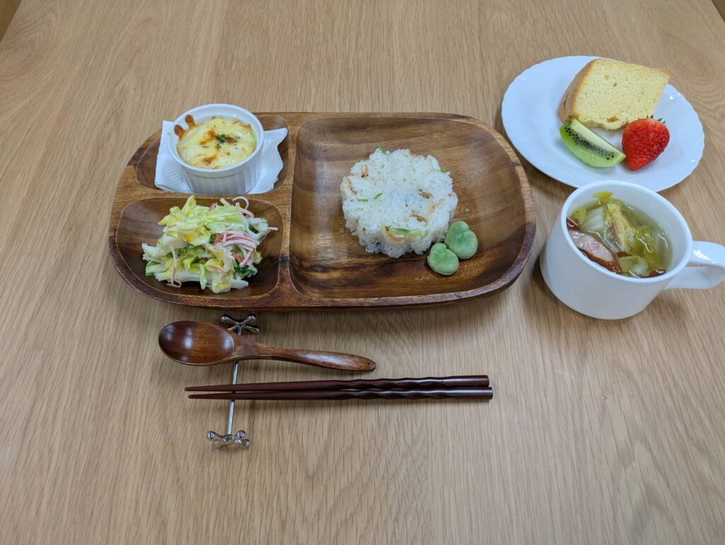 農薬・肥料不使用のお米と、全国の賛同者から届く季節折々の安全な食材を積極的に取り入れたお食事を提供しています。